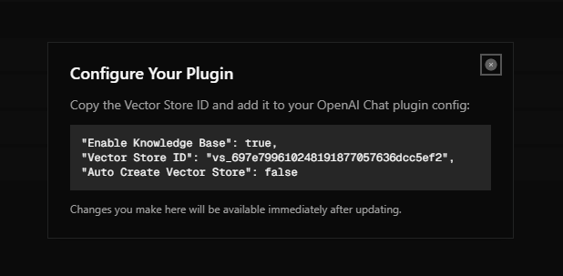 - 4Copy the Vector Store ID into your plugin config